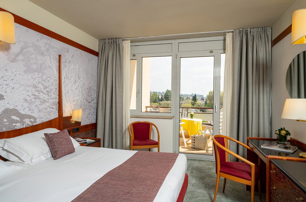 Located on the upper floors, these spacious double rooms come with a balcony, Wi-Fi, heating, and air conditioning. Some rooms also include a chair bed or a double sofa bed.