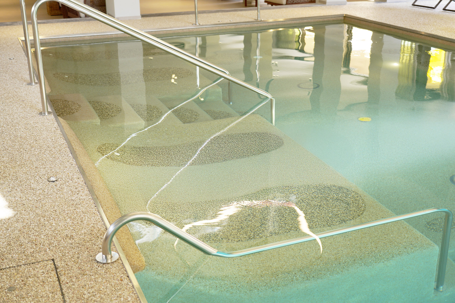 Attraverso un profondo restyling, la piscina storica si rinnova nell'estetica e nel comfort, arricchendosi di una nuova zona idromassaggio di 29 m². Il rifugio ideale per un bagno rilassante anche in primavera e in autunno, avvolti da un'atmosfera elegante e contemporanea.